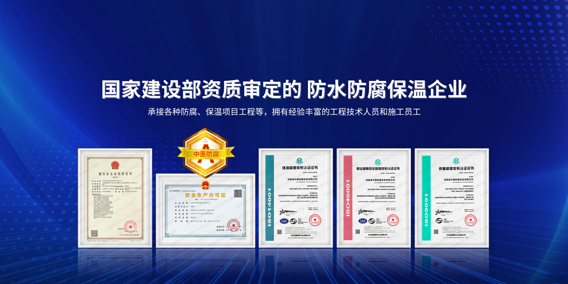 公司經(jīng)營范圍:防水防腐保溫工程;消防設施工程;建筑裝修裝飾工程;建筑機電安裝工程;電力工程;建筑工程;石油化工工程;工業(yè)清洗工程;油罐清洗工程;鋼結(jié)構(gòu)工程;環(huán)保工程;模板腳手架工程;電纜防火封堵、防污閃噴涂、外墻外保溫工程;各類施工勞務作業(yè);設備維修、船舶鉚焊、涂裝;電力工程材料、建材、防水材料、防火材料、防腐保溫材料銷售,并相繼通過了GB/T19001-2008idtISO9001:2008GB/T50430-2007質(zhì)量管理體系認證證書。GB/T24001-2004idtISO14001:2004環(huán)境管理體系認證證書。GB/T28001-2011idtOHSAS18001:2007職業(yè)健康安全管理體系認證證書。公司是中國防腐蝕于防護協(xié)會、中國施工企業(yè)管理協(xié)會、電力協(xié)會和中國鋼結(jié)構(gòu)防水協(xié)會會員單位。 公司的經(jīng)營業(yè)務涵蓋了石油、化工、電力、冶金、煤炭、船舶、國防、燃氣、水利、環(huán)保、交通運輸、航空及國防軍工和輕紡市政等行業(yè)的防腐保溫絕熱設備。鋼結(jié)構(gòu)安裝、防火、防水、金屬噴鍍、聚脲噴繪、陰極保護、防滲透堵漏、玻璃鋼及各種磚版材料襯里、橡膠襯里、煙氣硫和耐酸溶劑腐蝕等工程施工。公司連續(xù)十年榮獲“省市先進施工企業(yè)”“安全生產(chǎn)先進單位”“重合同,守信用企業(yè)”和“AA***資質(zhì)企業(yè)”的稱號。2000年被命名為市級文明單位,2002年被國家工商行政管理局命名為“重合同,守信用的企業(yè)”、被中國工業(yè)防腐蝕技術(shù)協(xié)會命名為“防腐蝕企業(yè),能源節(jié)約及環(huán)境保護領域有豐富的經(jīng)驗和***的業(yè)績。工程一次交驗合格率100%。其中攀枝花鋼鐵公司煉鐵廠四號高爐及熱風爐防腐工程、上海寶鋼公司煤氣柜防腐工程、撫順石油一廠裝置防腐項目、齊魯石化公司稀烴廠高塔防腐工程、吉林化學工業(yè)公司煉油廠油罐防腐工程、天津石化熱電廠六號爐頂棚聯(lián)絡管保溫工程、大慶油田(太倉)力神泵業(yè)工程、中國化學工程第十一建設工程、中原油田勘探局工程、中國石化銷售有限公司華北分部、魯皖輸油管道工程、貴州開磷息烽合成氨工程、陜西黃陵煤化工程、中國石油天然氣西部管道塔里木輸油工程、邯鋼集團邯寶鋼鐵公司煉鐵工程、德州供電工程、吉寶(南通)船廠工程,偃師華潤熱力工程、鄭州熱力總公司。 河南省中惠防腐安裝有限公司愿以豐富的施工經(jīng)驗,***的技術(shù),***的設備,***的管理,***的服務,竭誠為國內(nèi)外廣大的用戶提供***滿意、******的工程作品。 我公司愿與國內(nèi)外同仁一道,團結(jié)協(xié)作,共同推進防腐蝕行業(yè)發(fā)展! 公司地址:河南省長垣縣建設路北段360號 固定電話:0373-8866488 郵編:453400 網(wǎng)址:http://www_zhff_com_cn.bjhq120.com